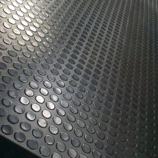 圓凸點(diǎn)防滑橡膠覆膜最高寬度可達(dá)1.5米,最厚達(dá)6mm。其生產(chǎn)工藝是以凸點(diǎn)式防滑原理,橡膠表面以圓點(diǎn)向外凸出,防止人員不小心突然跌倒。